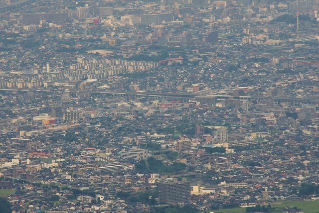 遠くに見える佐賀平野の夜景とのアンバランスが