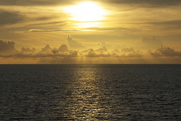 光の帯がある空を見て、昔の日本国旗を思いだしました。