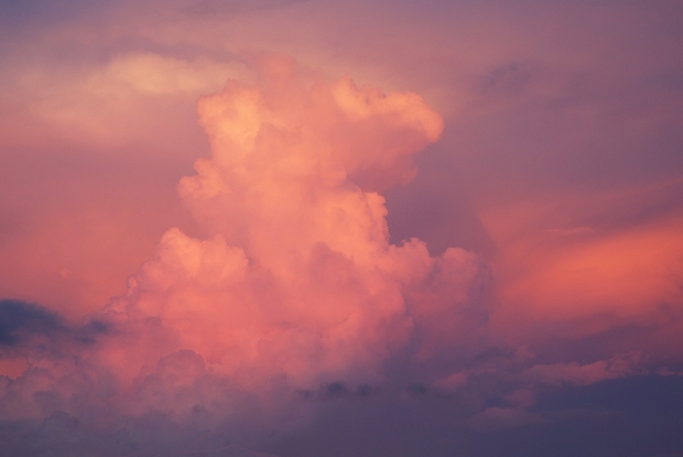東の空を見てみると、発達した入道雲まで赤く染まって見事です。