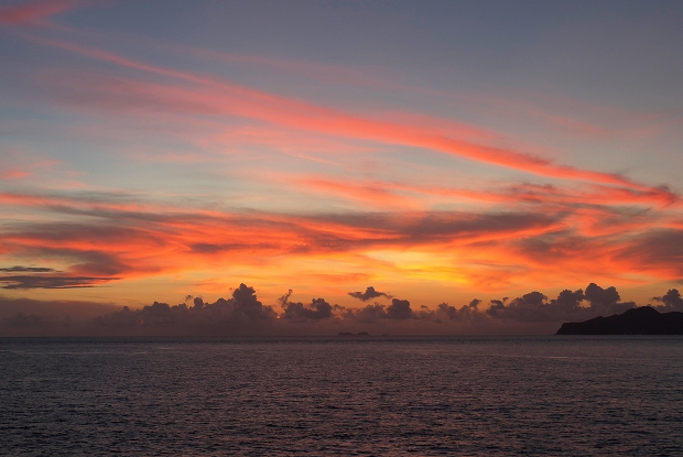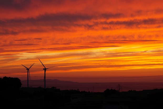 西の空は茜色に染まった雲で、自然の芸術を垣間見ました。