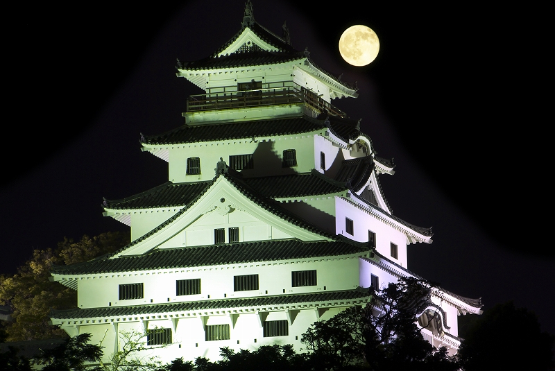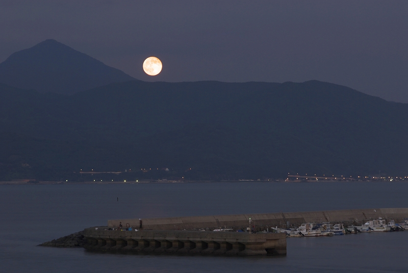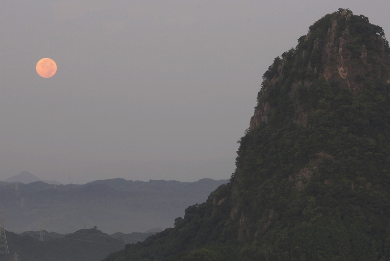 夕方になり、かなたの山から待望の満月が昇ってきました。