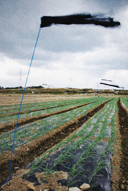 ネギが一生懸命踏ん張っている。