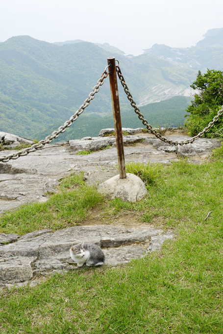 しばらく撮影してるとウミネコの声が聞こえました、「?」海でもないのにと耳を凝らすと「ミャァ~」とはっきり聞こえます、フと横の草木の中を見るとこんな高くて人もめったに来ない場所に猫です、しかも子猫がそこで鳴いてます。