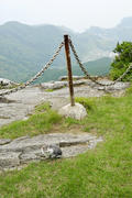 そこは途中まで車でいけますが後は徒歩です。およそ1kmのなだらかだったり急だったりの上り坂を歩く事30分、たどり着きました。 とても開けててものすごく高く感じる断崖絶壁です、天気が良ければそれはそれはすばらしい風景だと思いますた~残念です。